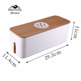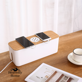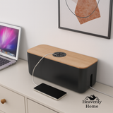 Heb je ook genoeg van rondslingerende kabels en een rommelig bureau? Met deze kabel management box zorg je in een handomdraai voor een strak en georganiseerd interieur. Dankzij het moderne design met een houtlook deksel past hij perfect in elke woon- of werkruimte.